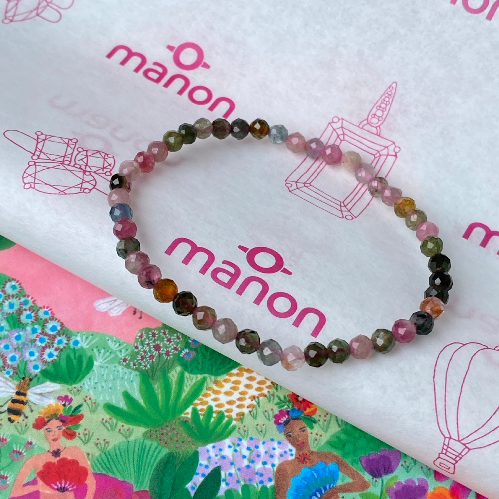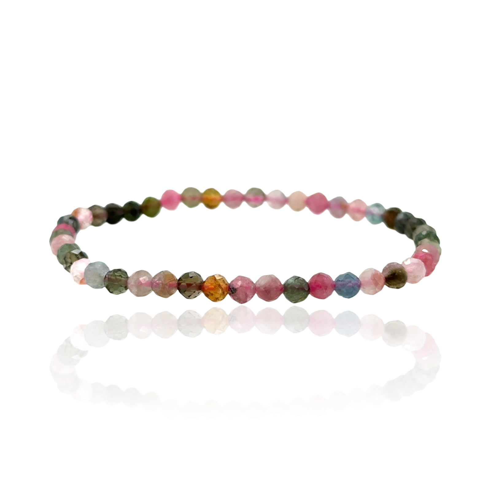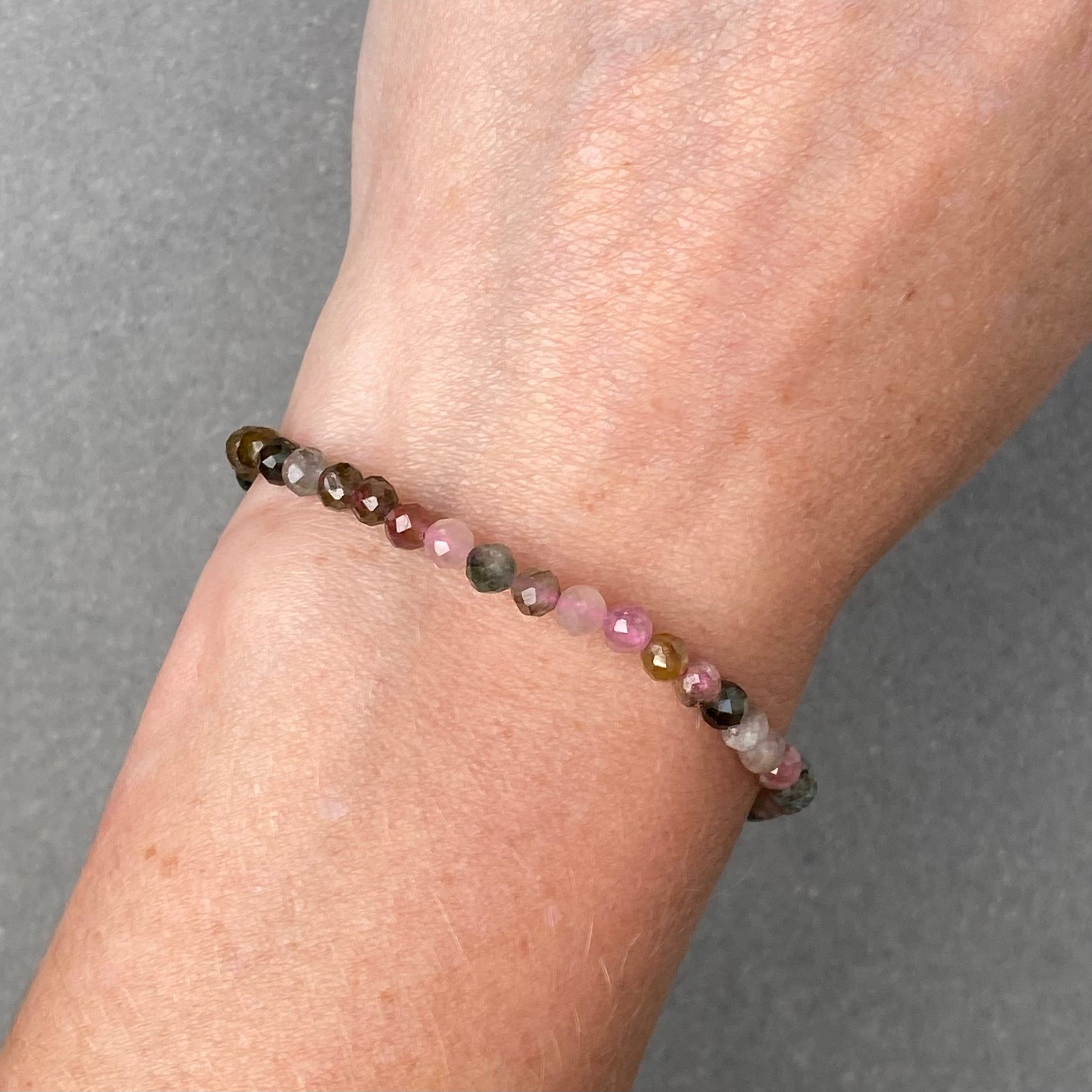 De Candy Gems armband van Manon Herrewijnen is handgeregen met 4 mm gefacetteerde toermalijnkralen in een natuurlijke mix van kleuren. Een sprankelende armband vol bescherming, balans en energie, liefdevol gemaakt in Rotterdam.