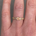 De Pink Diamond romance ring is het meest romantische stuk uit de Diamond Lace collectie. Een uniek ontwerp waarin zachtheid, kracht en elegantie samenkomen. Met de hand gemaakt in 14 karaat geelgoud en bezet met natuurlijke witte diamanten vormt deze ring een verfijnd kantpatroon dat doet denken aan tijdloze luxe. In het hart schittert een zeldzame roze lab-gegroeide diamant van 0,42 ct, kussen geslepen en met een diepe fancy intense pink kleur. De zachte gloed van roze vormt een spannend contrast met de heldere schittering van de omliggende briljant geslepen diamanten, samen goed voor 0,25 ct in de kleur FG en kwaliteit VS.