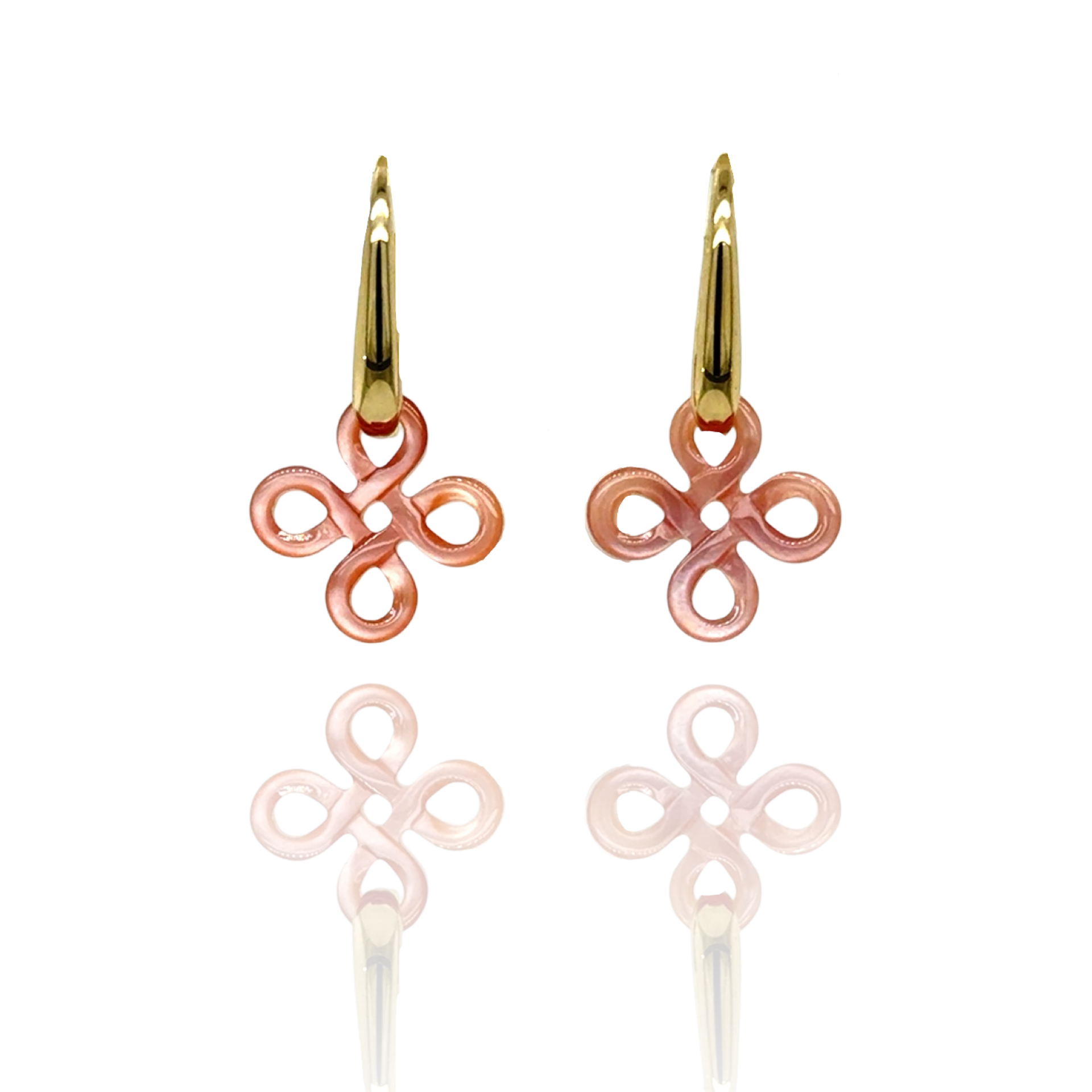 De bijpassende hangers zijn vervaardigd uit zachtroze parelmoer en hebben een elegante lengte van 13 millimeter. Met een gewicht van slechts 3 gram dragen ze licht en comfortabel, perfect voor dagelijks gebruik, van ochtend tot avond.