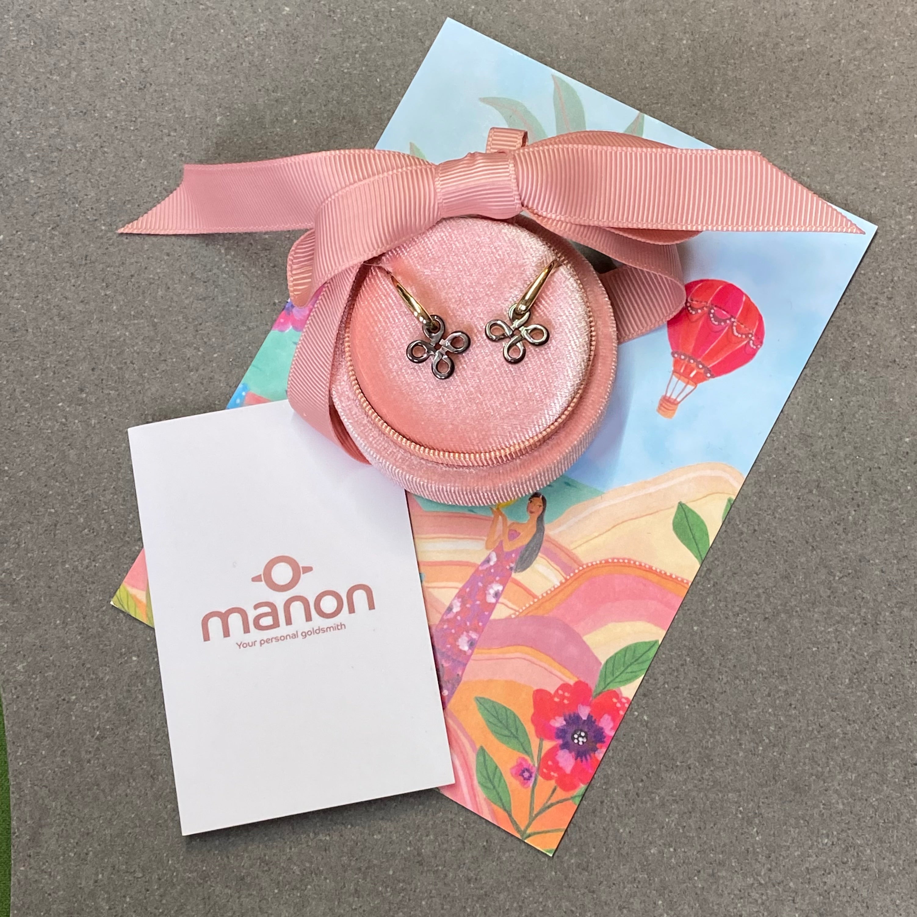 De bijpassende hangers zijn vervaardigd uit zachtroze parelmoer en hebben een elegante lengte van 13 millimeter. Met een gewicht van slechts 3 gram dragen ze licht en comfortabel,  perfect voor dagelijks gebruik, van ochtend tot avond.