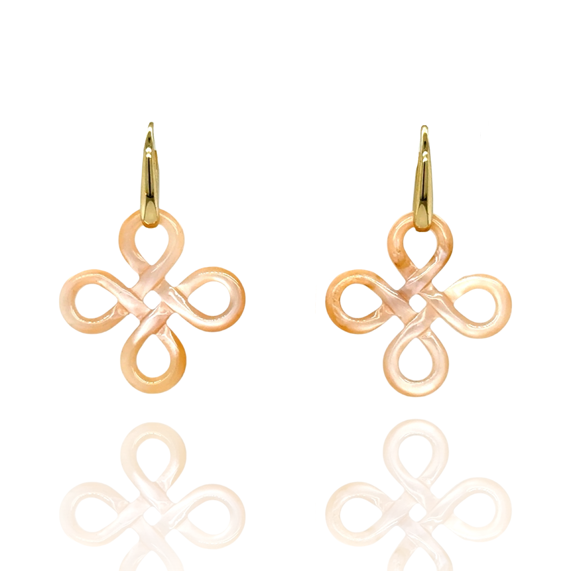 De bijpassende hangers zijn vervaardigd uit zachtroze parelmoer en hebben een elegante lengte van 23 millimeter. Met een gewicht van slechts 3 gram dragen ze licht en comfortabel,  perfect voor dagelijks gebruik, van ochtend tot avond.
