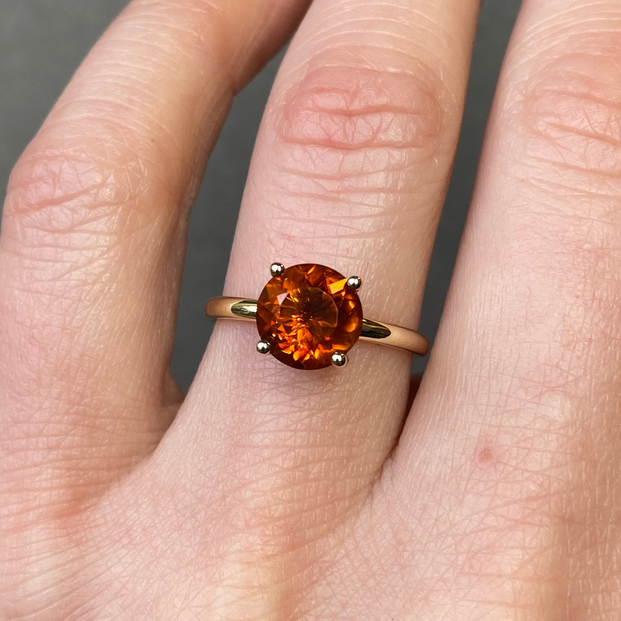 14k gold ring set with a Madeira Citrine