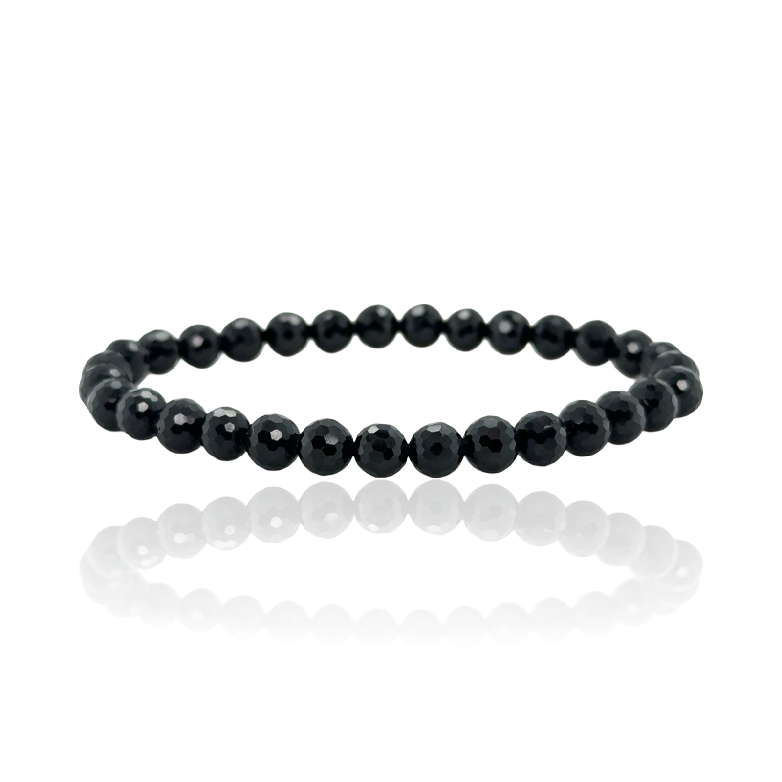 Deze Candy Gems armband is geregen met gefacetteerde zwarte toermalijnkralen van 6 mm. De subtiele facetten geven de diepe, donkere kleur een prachtige glans die bij elke beweging tot leven komt. Met een lengte van 19 cm en elastische afwerking sluit de armband comfortabel en soepel om de pols. Zwarte toermalijn staat bekend als een krachtige beschermsteen; ze helpt je negatieve energie en stralingen af te weren en stevigheid te vinden in jezelf.