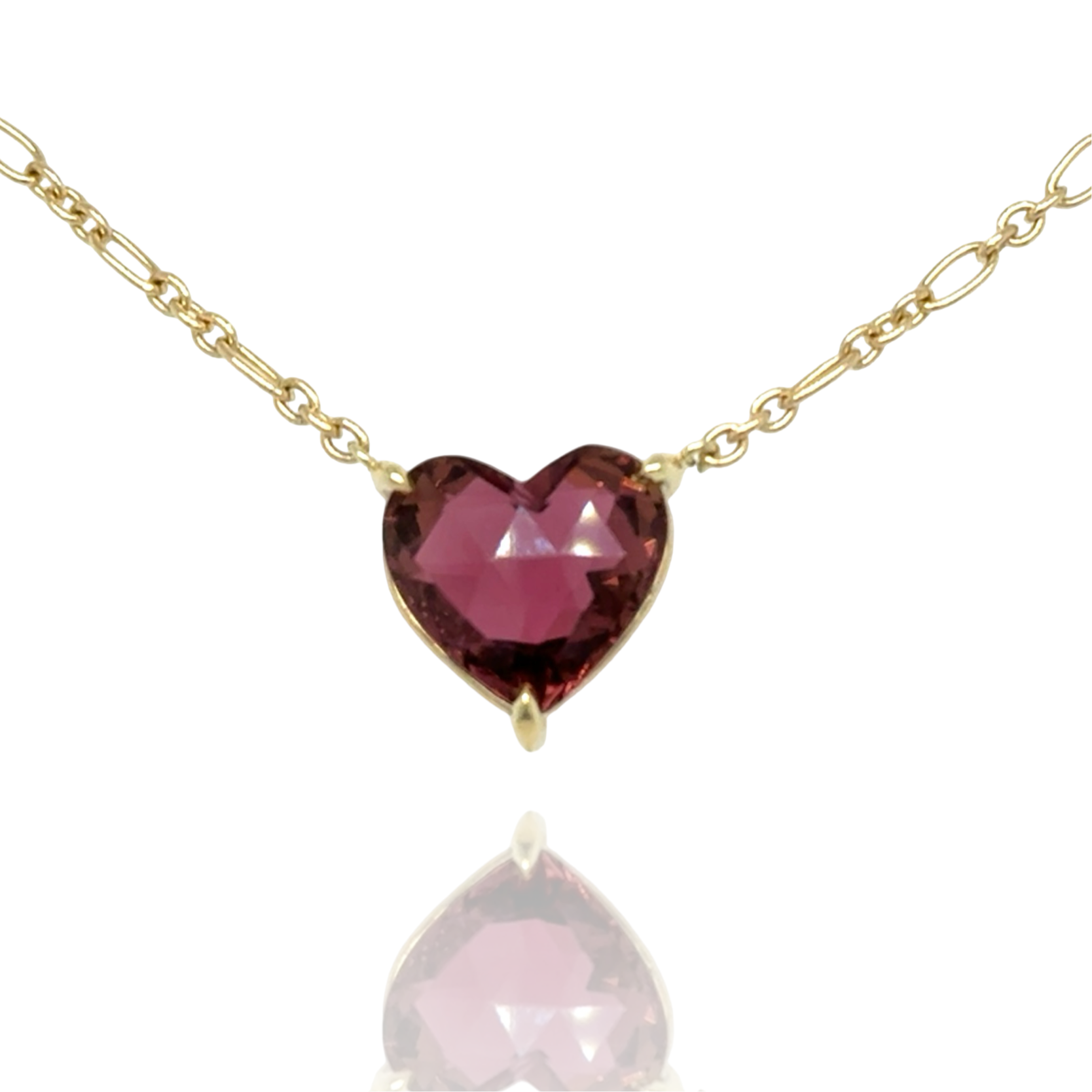 Soms vangt een sieraad precies wat je voelt. Pink Passion is zo’n ketting, een liefdevolle ode aan warmte, kracht en zachtheid. In het midden schittert een met de hand gesneden hart van rubelliet toermalijn, diep roze van kleur en facetgeslepen zodat elk straaltje licht tot leven komt. Het hart rust zacht op je huid, precies waar liefde thuishoort, dicht bij je eigen hart.