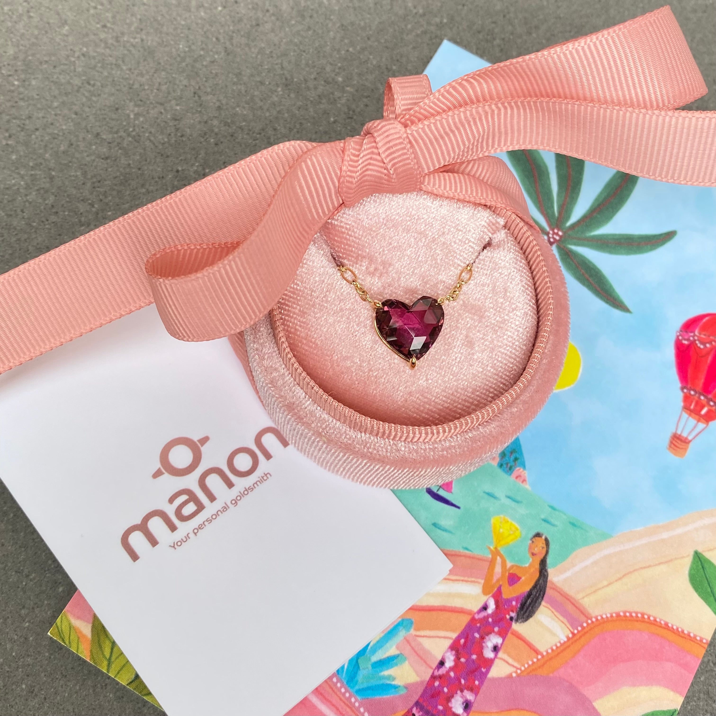 Pink Passion wordt met zorg en aandacht gemaakt in mijn atelier in Rotterdam. De hanger is vervaardigd uit gerecycled goud. Het goud is gecertificeerd door Waarborg Holland B.V. en bij het sieraad ontvang je een Manon certificaat van echtheid.