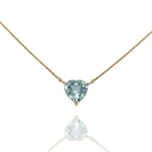 Deze unieke ketting draagt een hartgeslepen aquamarijn van 10 bij 9,5 millimeter, verfijnd gefacetteerd om haar transparante, zachtblauwe gloed te laten spreken. De kleur doet denken aan helder bergwater of het eerste ochtendlicht op zee. De steen is zorgvuldig vastgezet tussen een anker collier van 14 karaats gerecycled geelgoud met fijn gefacetteerde schakels. De ketting heeft een lengte van 42 centimeter en rust daarmee perfect op het borstbeen.