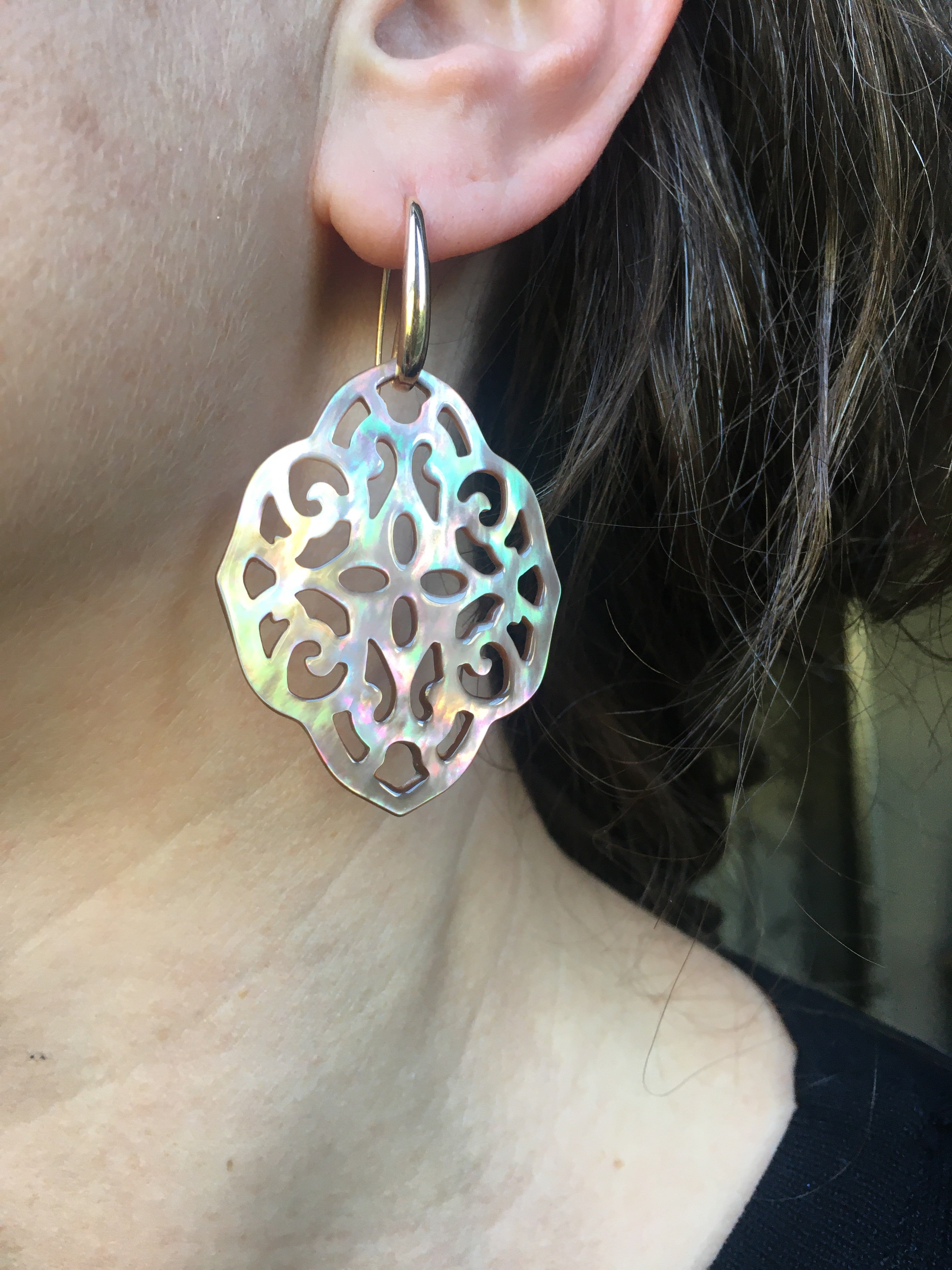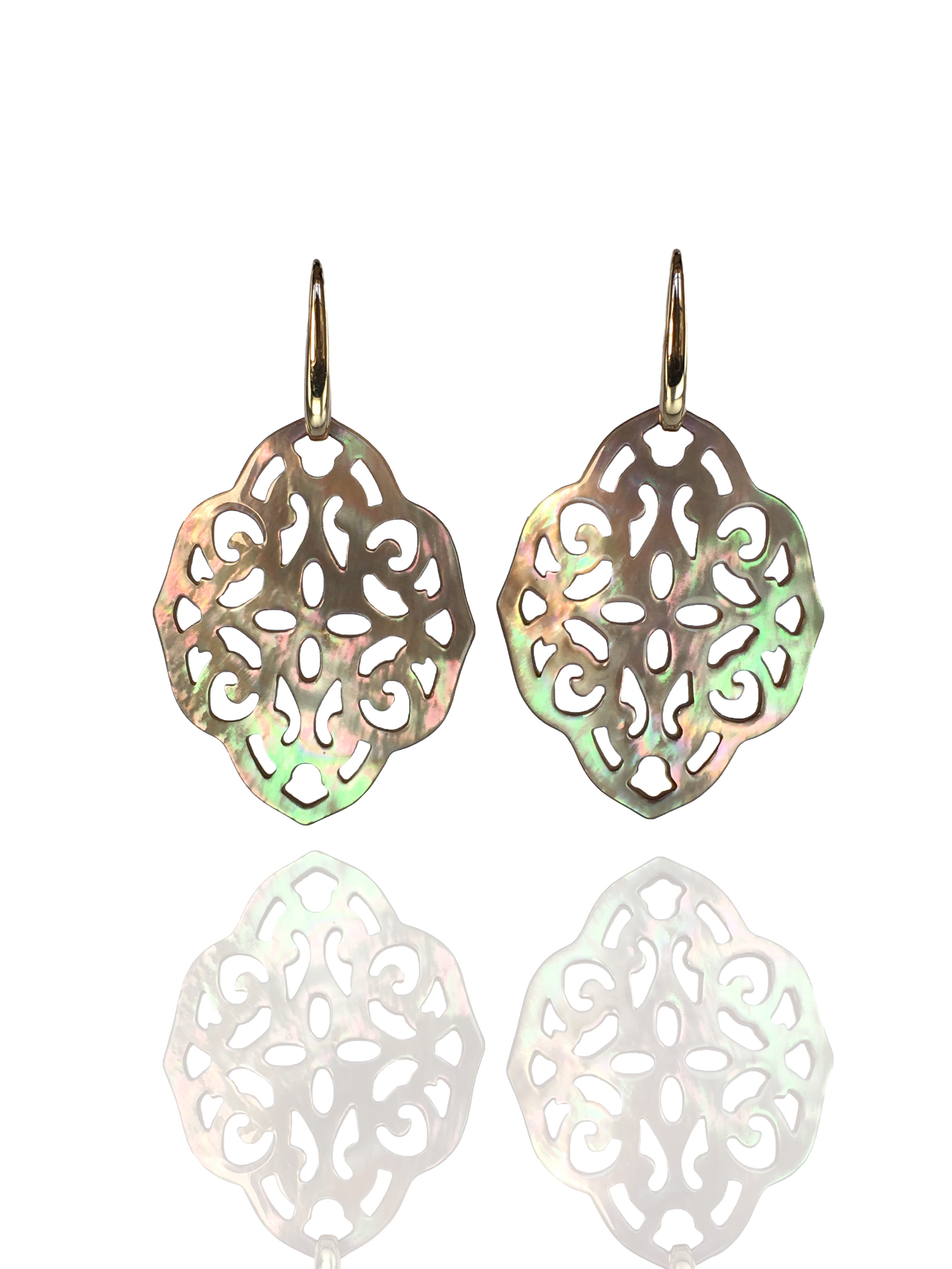 These pendants are made from Mother of pearl in a pinkish luster.