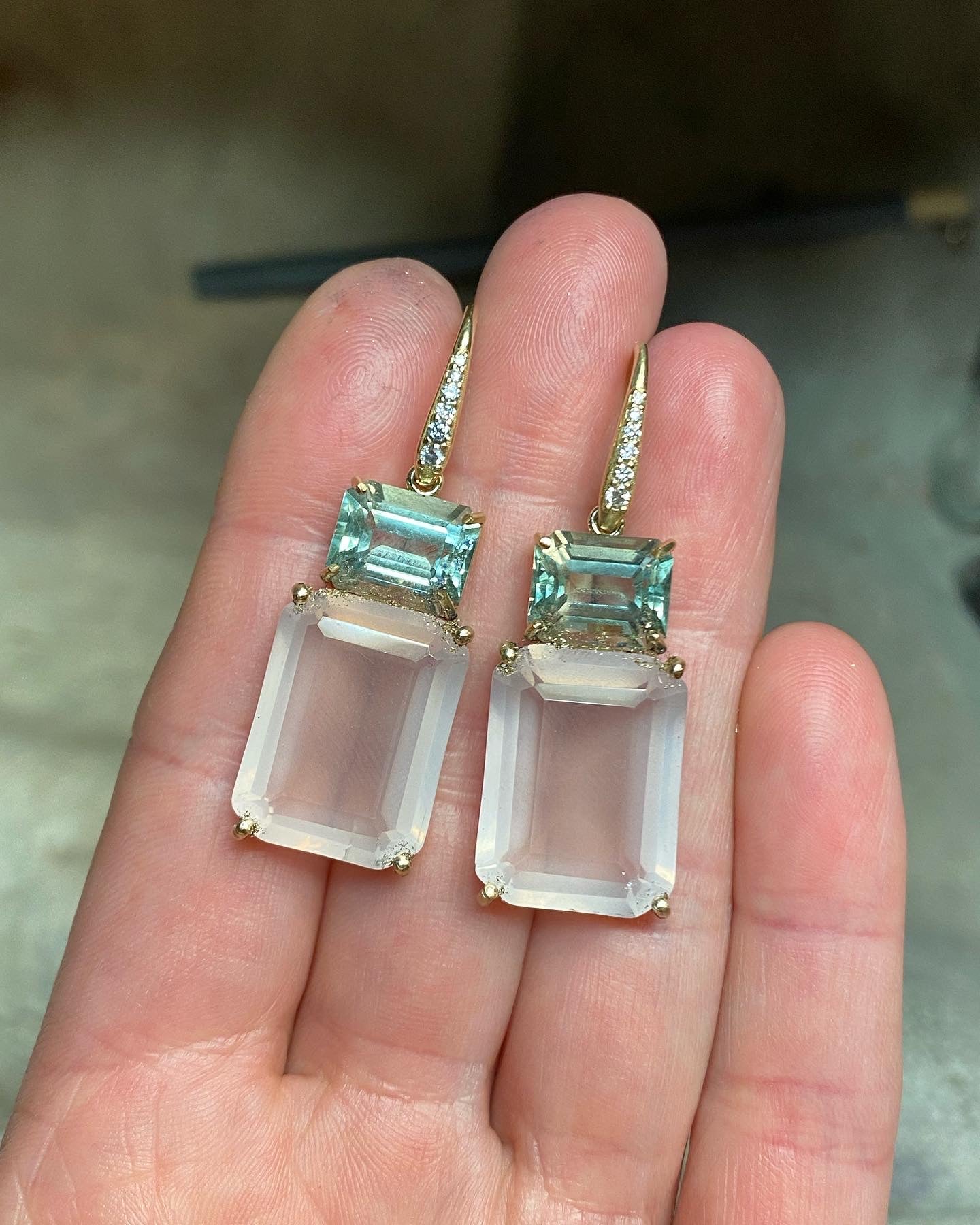 The earhooks are made in 14k gold (15mm long) and have the option to be set with diamonds. MH earhooks are interchangeable with all our ear pendants.