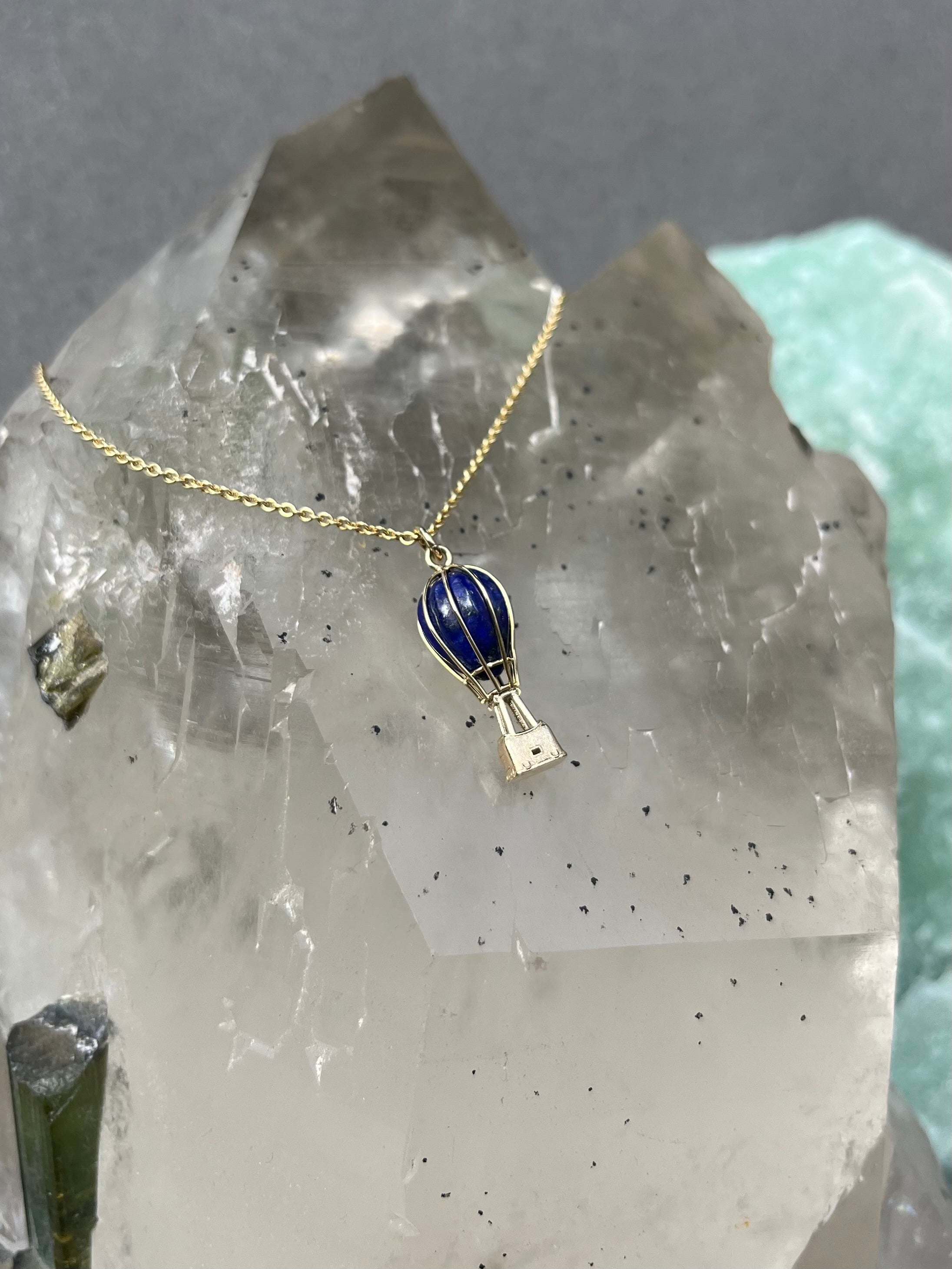 14k gold pendant handmade hot air balloon pendant with lapis lazuli