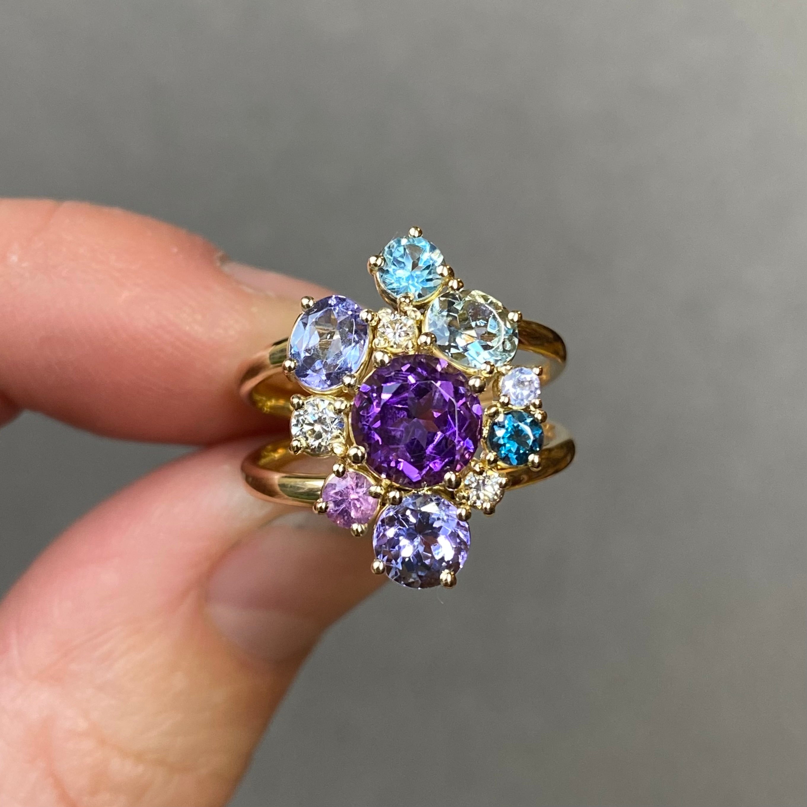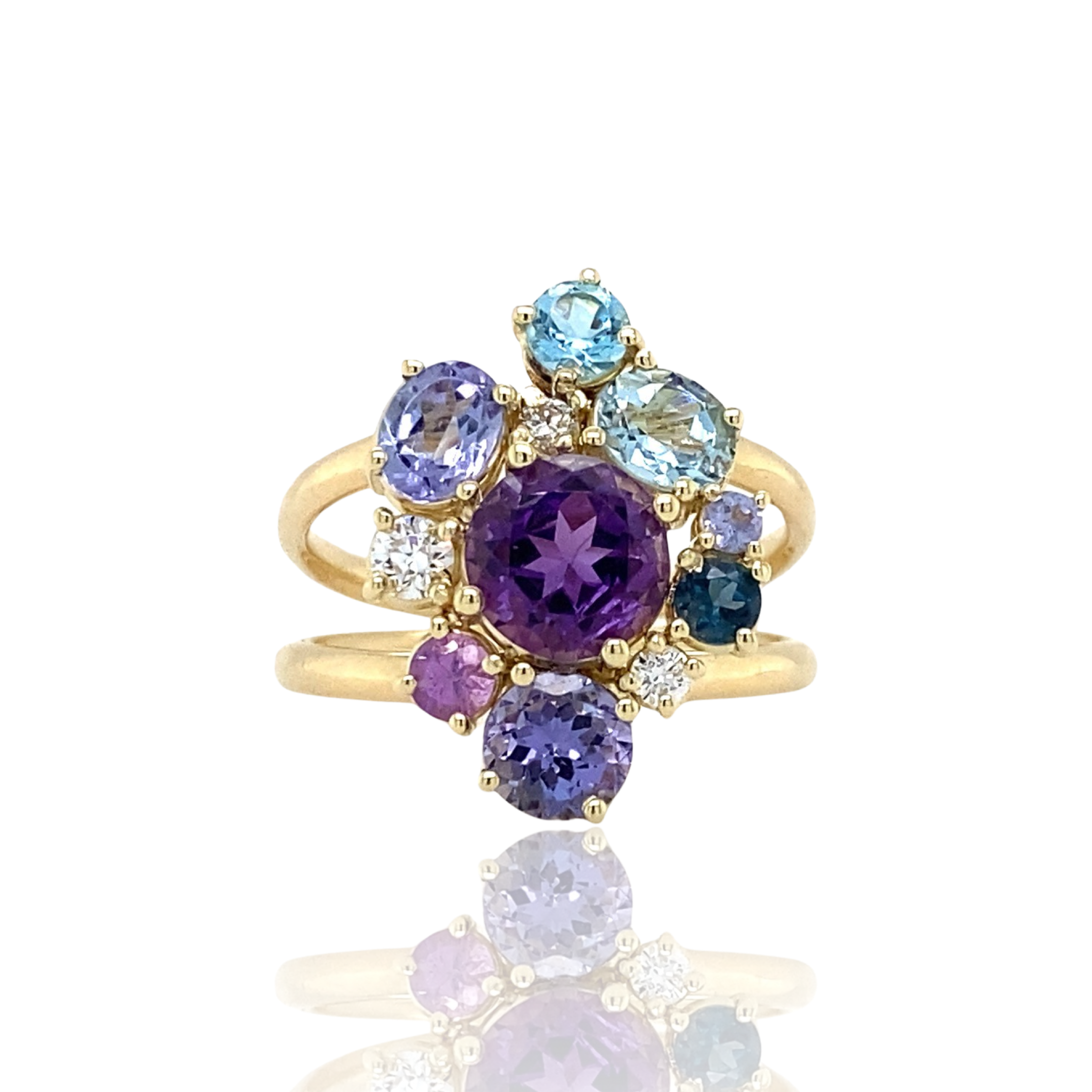 Gemstones: Amethyst, tanzanite, blue topaz, sea green tourmaline and diamonds