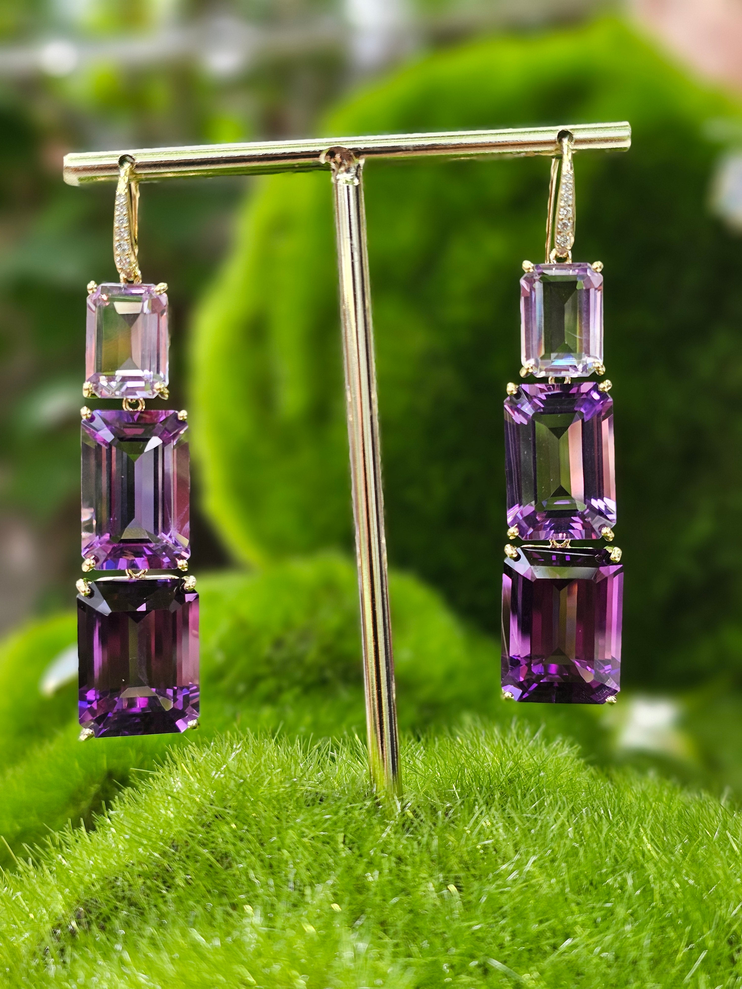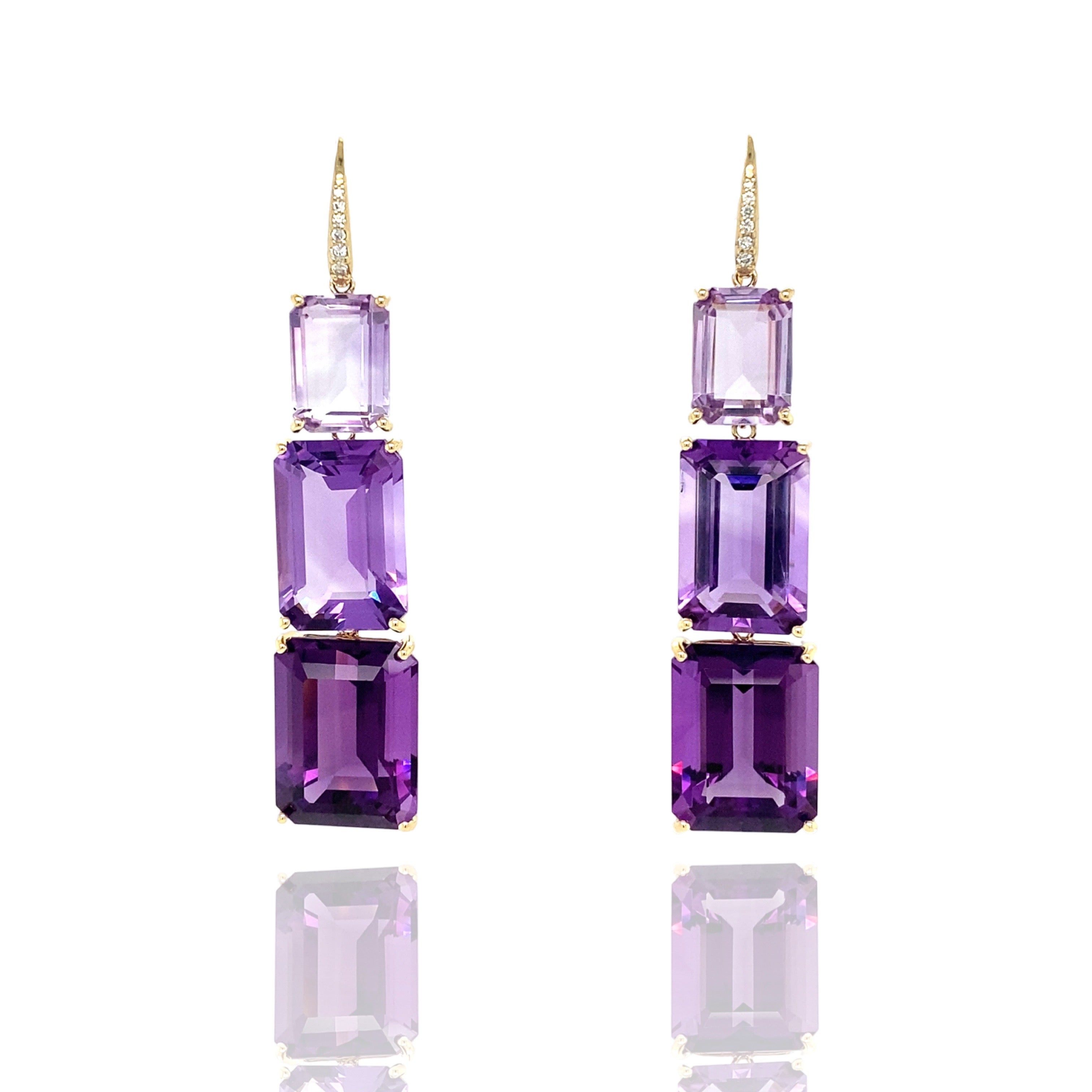 Stackable ear pendants in different hues of Amethyst, can be worn in many different combinations. Sold as set or in separate duos.