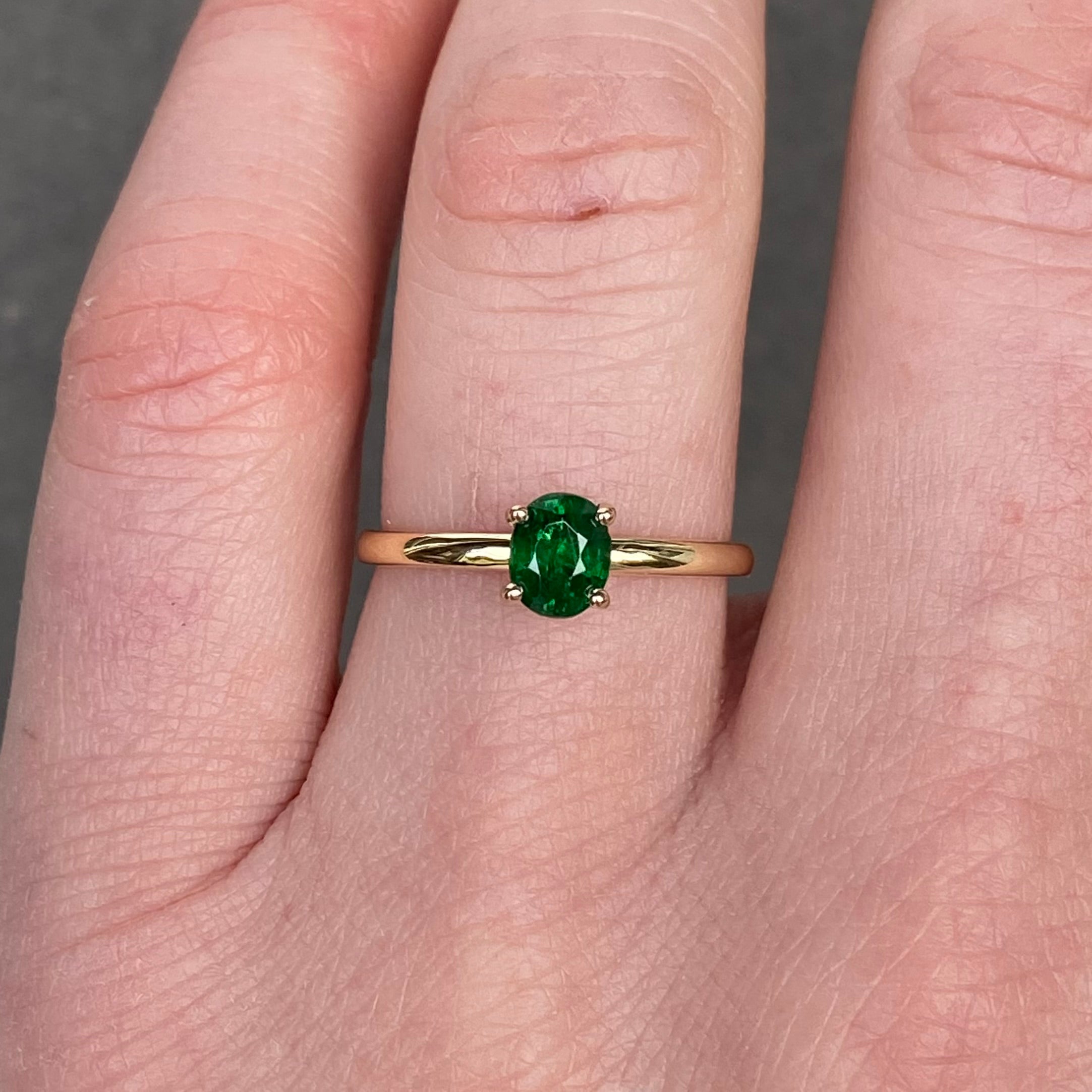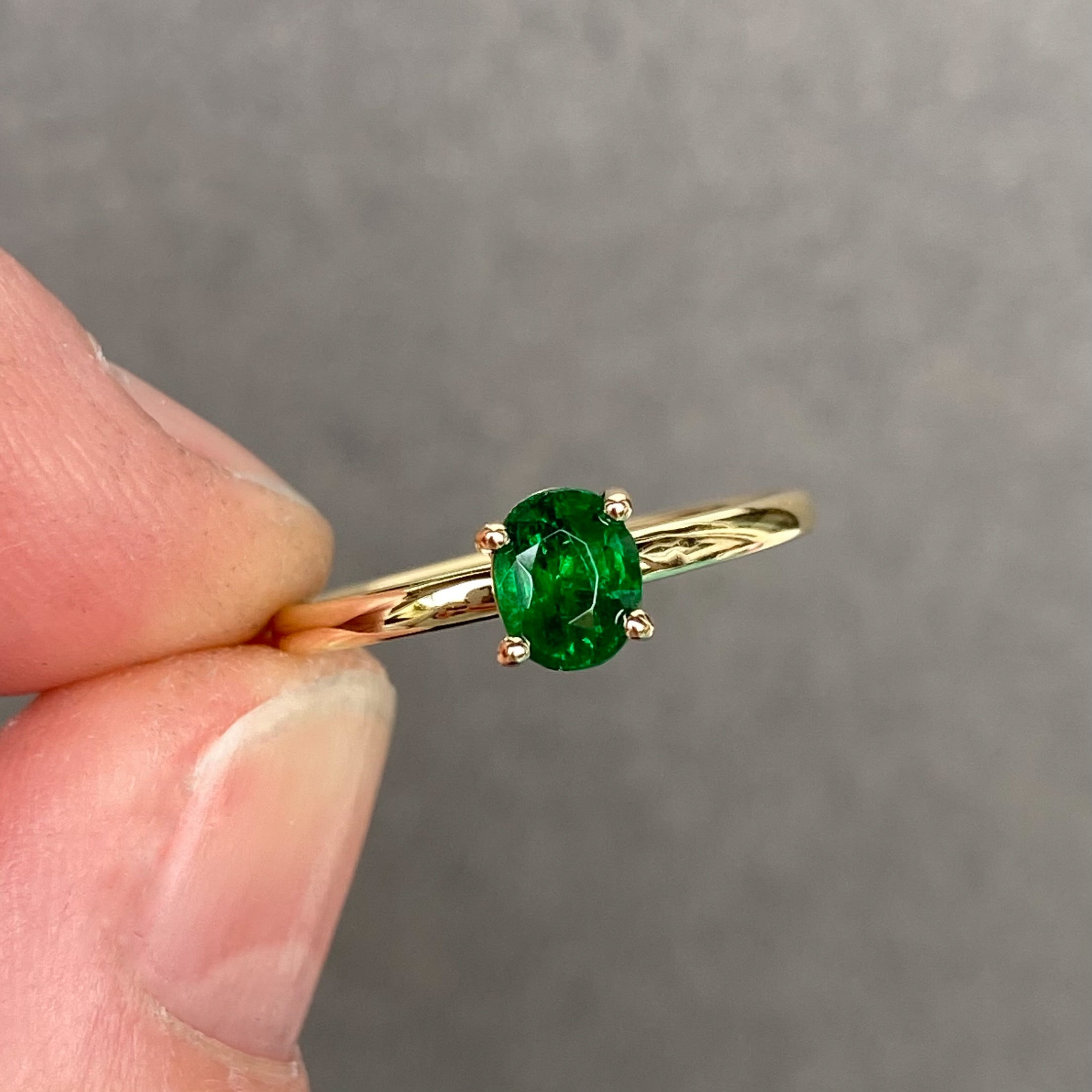 De Stackable Ring Tsavoliet Granaat is een verfijnd eerbetoon aan de geboortesteen van januari. In het hart schittert een ovale tsavoliet granaat van 5,8 bij 4,7 millimeter, zorgvuldig met de hand geselecteerd en briljant gefacetteerd om haar diepe, levendige groentint te vangen. De steen weerspiegelt vitaliteit en groei, subtiel gevangen in een vorm die kracht en elegantie verenigt. Met de hand gezet in 14 karaats gerecycled geelgoud, draagt deze ring de aandacht en precisie die kenmerkend zijn voor mijn atelier in Rotterdam.