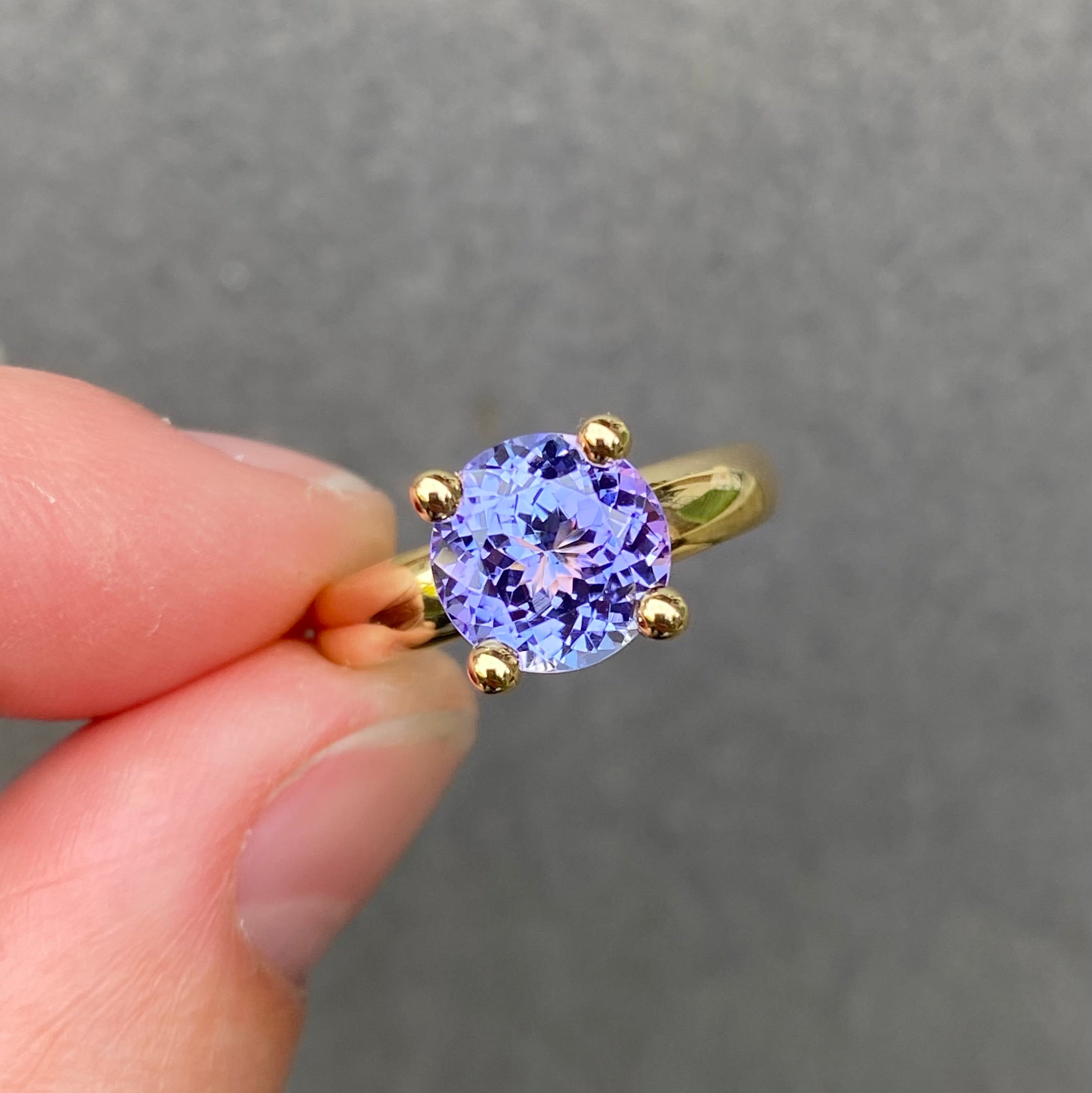 De #12 Collector’s ring is een uniek juweel binnen de Collector’s collectie, met een zeldzame tanzaniet van 9 millimeter, 3,69 karaat. De steen is rond geslepen en uitzonderlijk verfijnd gefacetteerd, waardoor het licht in eindeloze schakeringen van paars, lila en blauw speelt. Elke beweging onthult een nieuw facet, een nieuw moment van schittering.