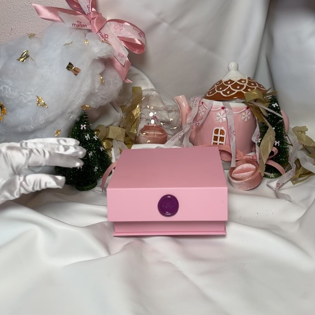 Elk sieraad wordt zorgvuldig verpakt in een zachtroze doosje, helemaal klaar om